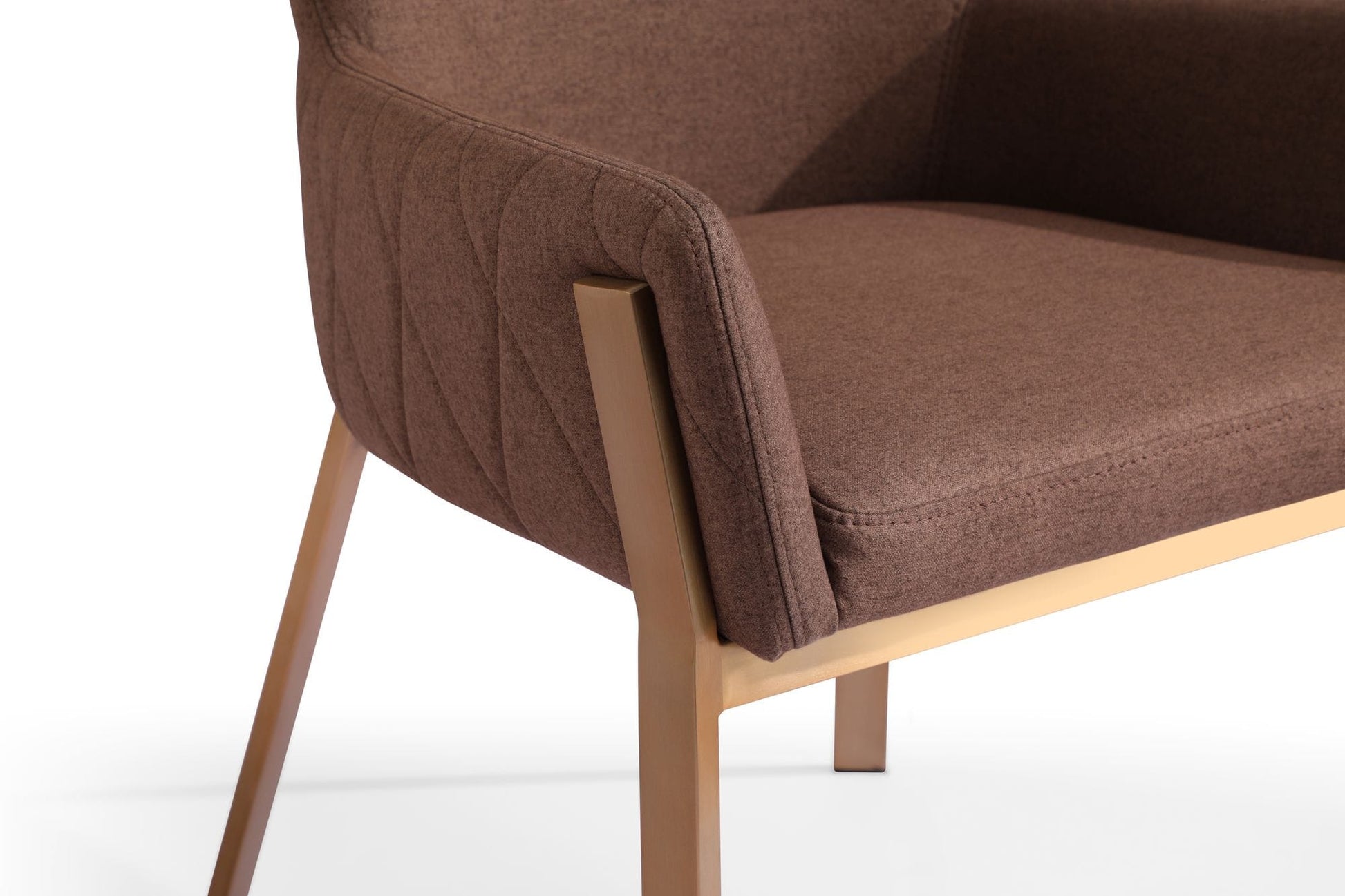 The Robin Dining Chairs are a lovely addition to your dining room. Sure to turn heads, the gold accenting draws the eye while the soft brown fabric creates a relaxing luxury to be enjoyed by the whole family. The simple detailing of the diamond stitches adds an element of class and sophistication perfect for your formal dining area.