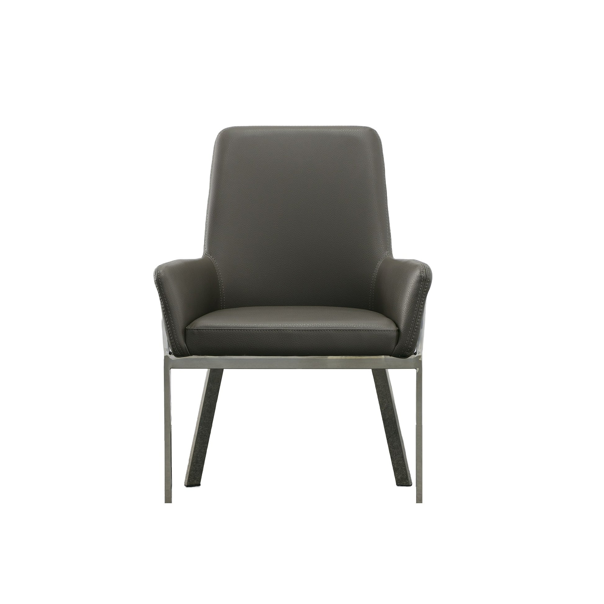 A superb technique to upgrade your dining room is the presence of the Modrest Robin Modern Grey Bonded Leather Dining Chair. Donning a dainty Grey bonded leather upholstery, this chair has a stunning brushed stainless steel frame. Designed with a full cushioned seat, a backrest adjoined with the arms, X-shaped stitches adorn the outer area of the back and arms. This dining chair will also look great in any part of the home, as well as an accent chair.