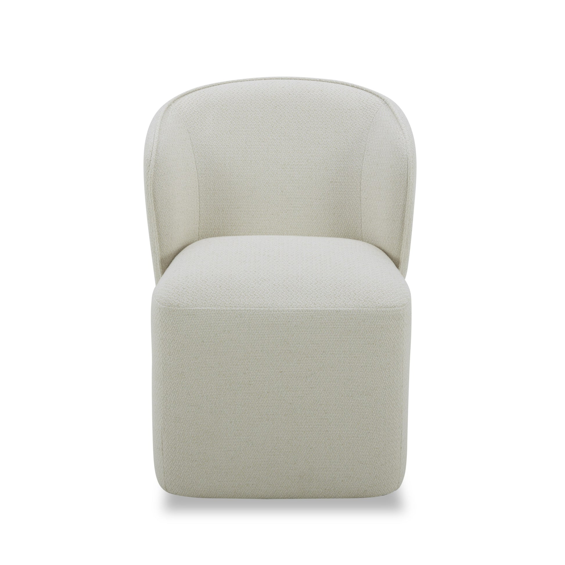 The Modrest Souza Modern Beige Fabric Swivel Dining Chair showcases a sleek, contemporary design with soft curves and a plush, inviting upholstery. Its rounded backrest and minimalist silhouette create an elegant yet comfortable seating option ideal for modern dining spaces. The swivel feature adds practicality, enhancing accessibility around the table, while the neutral beige color seamlessly complements various interior styles. Perfect for both casual gatherings and formal dining, this chair combines aesthetic appeal with functional comfort.