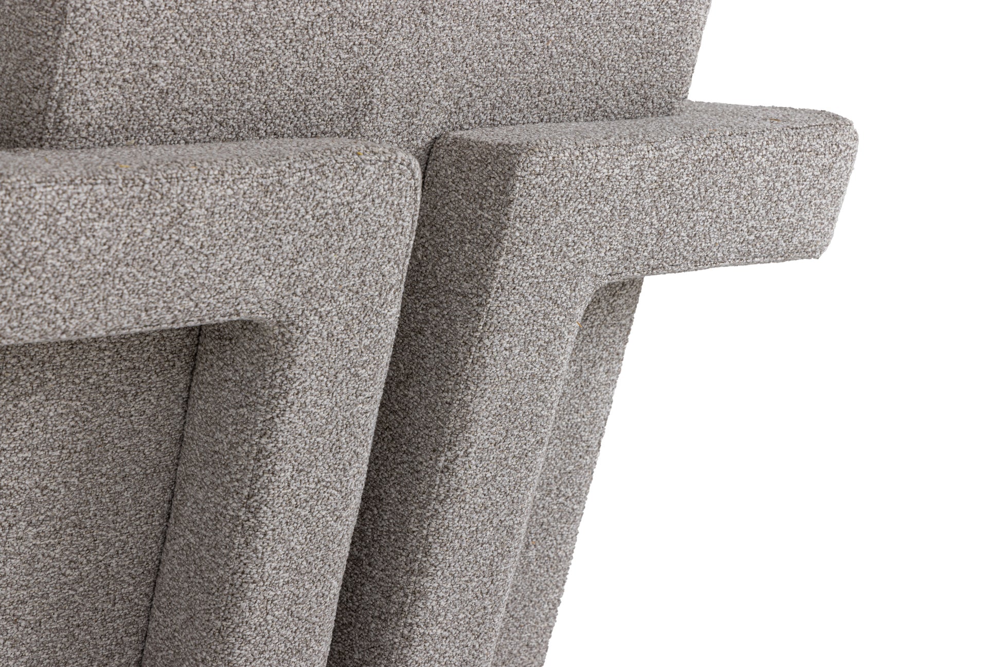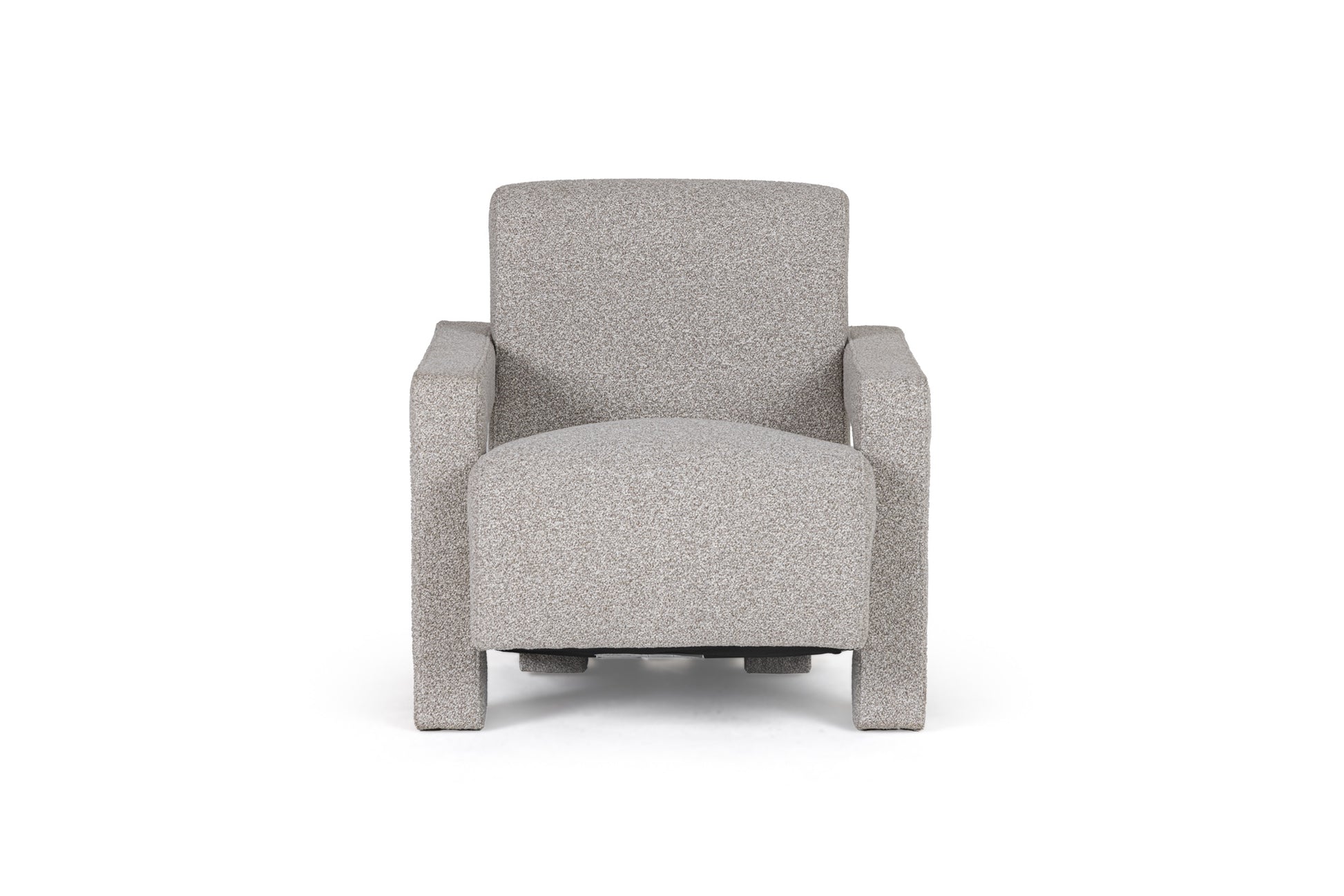 The Modrest Wylie Accent Chair showcases a contemporary design with a sleek, modern silhouette. Upholstered in light grey-beige fabric, its textured surface adds warmth and sophistication. The chair features wide, clean lines and blocky armrests, offering both comfort and style. Its minimalist aesthetic makes it a versatile addition to various interior spaces, seamlessly blending with modern decor. Perfect for creating a cozy reading nook or complementing a stylish living room, the Modrest Wylie is an elegant choice for contemporary living.