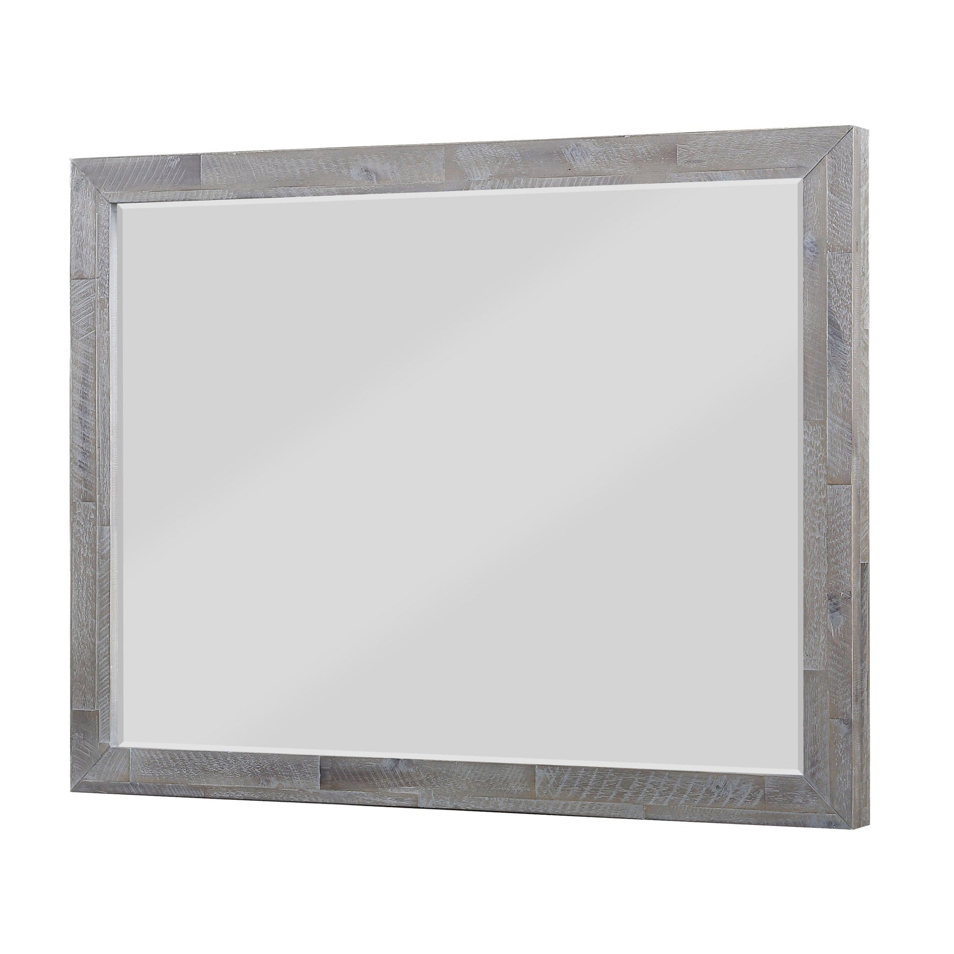 - Beveled glass mirror includes keyhole brackets for wall mounting
