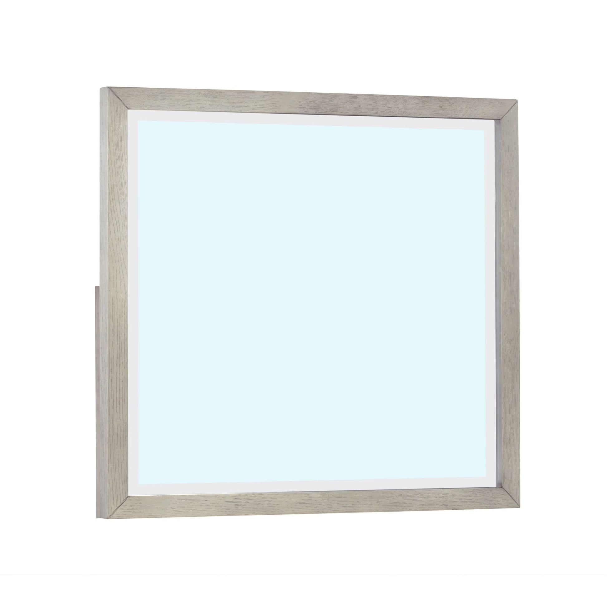 - Beveled mirror is wall- and dresser-mountable