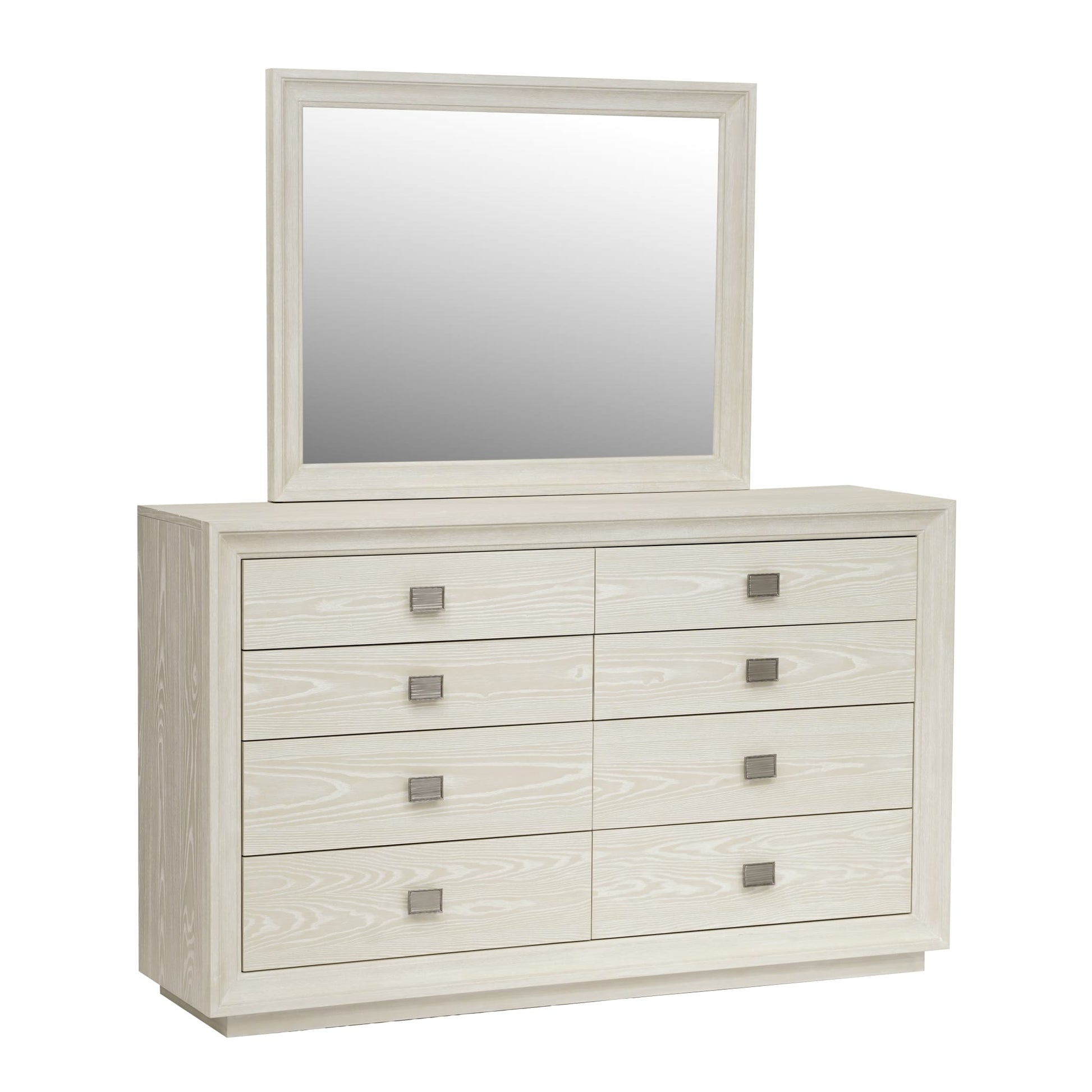 This classic contemporary collection blends a crisp modern silhouette with traditional picture frame moldings and jewel-like, custom molded metal pulls. Made from a mix of quartered and flat cut Ash wood veneer and meranti solid wood, our proprietary Sugar finish showcases the wood's active grain with a beige base and a soft white powder glaze resting on top.