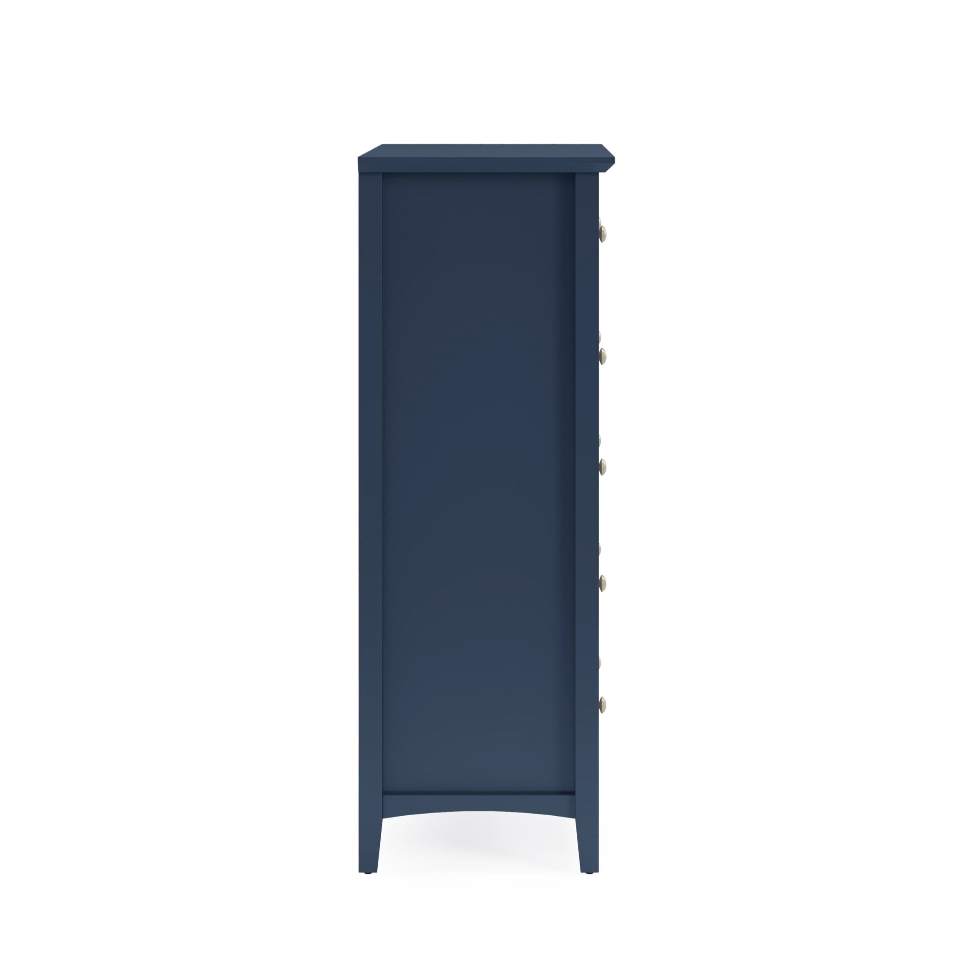 Starting with classic shaker-style drawer fronts, this timeless bedroom collection adds crisp lines and an all-new blueberry finish to create a look that blends seamlessly with modern, farmhouse, coastal and transitional decor. Gently tapered legs, beveled floating tops and stepped knobs are finished in a crisp brushed nickel tone complete the look.