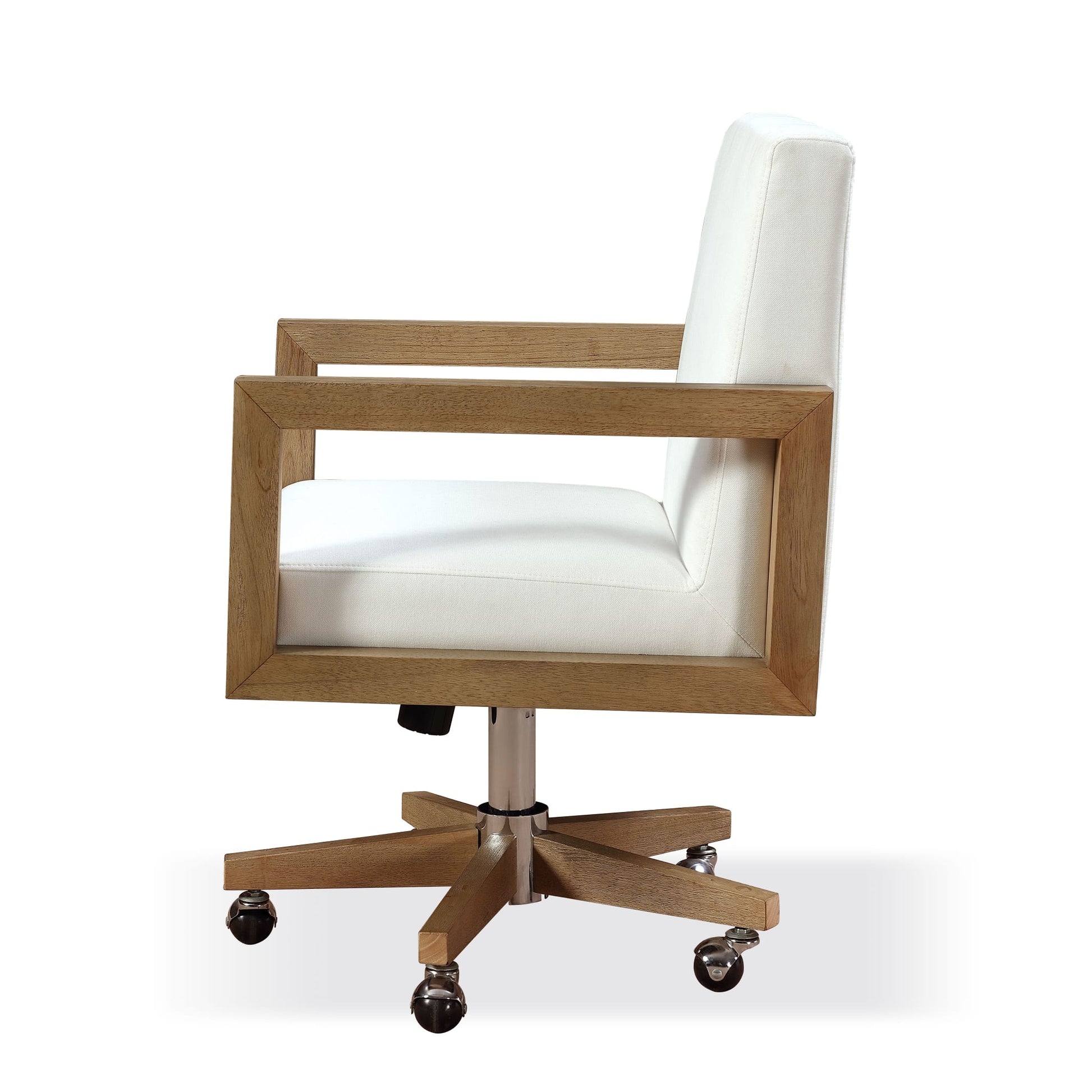 - Ergonomic office chair features fixed armrests, caster-equipped star base and gas lift with swivel and tilt functions