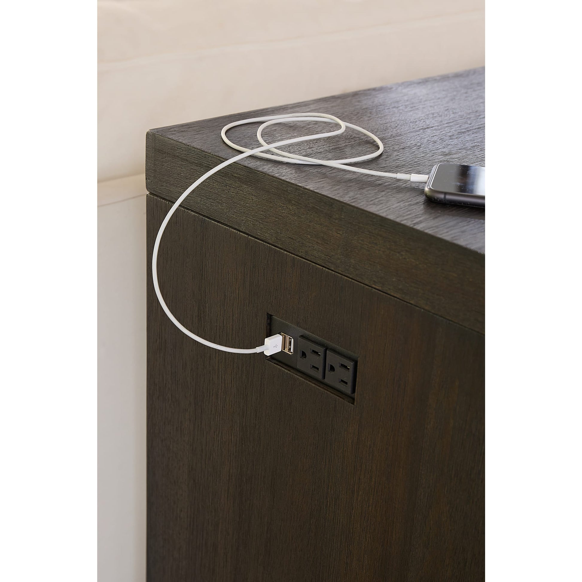 - Integrated charger includes Type B electrical plug, cable, 2 USB-A receptacles and 2 Type B electrical receptacles for convenient charging of laptops, phones, tablets, e-readers and other devices