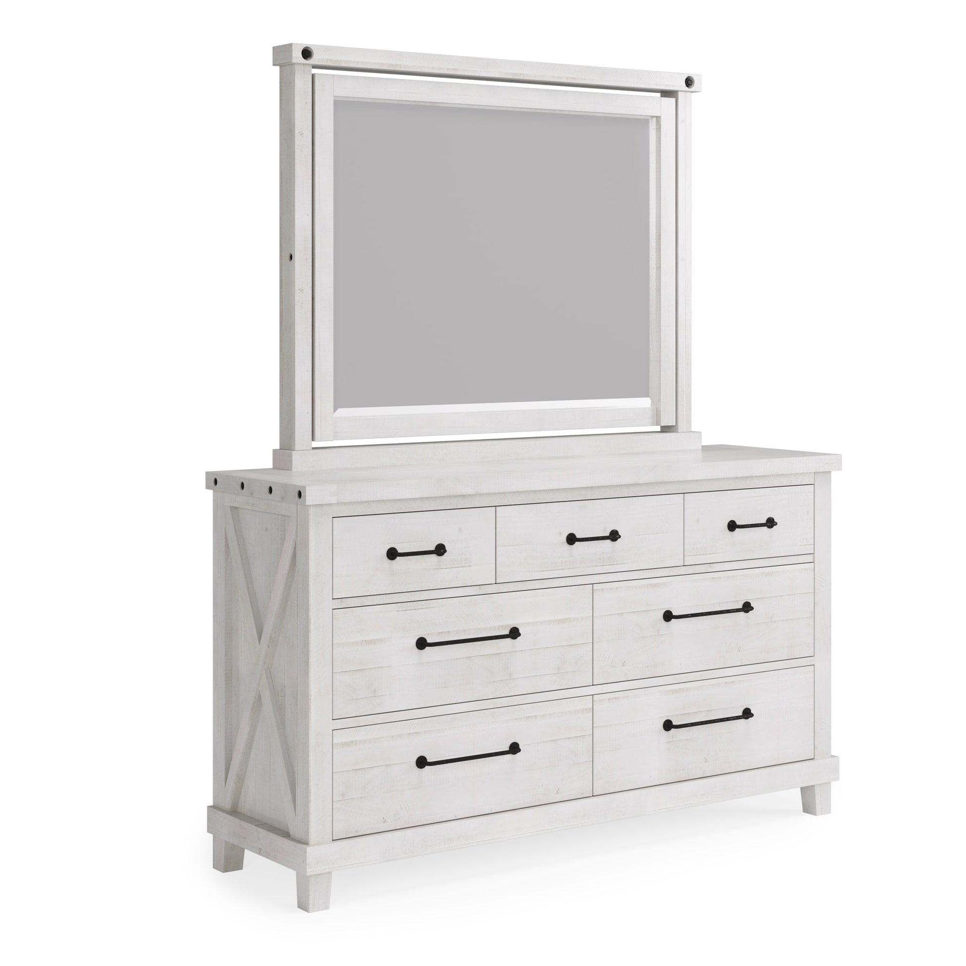 - Mirror includes 2 keyhole-style brackets on back side of frame for wall mounting; dresser mounting hardware included with Yosemite Dresser