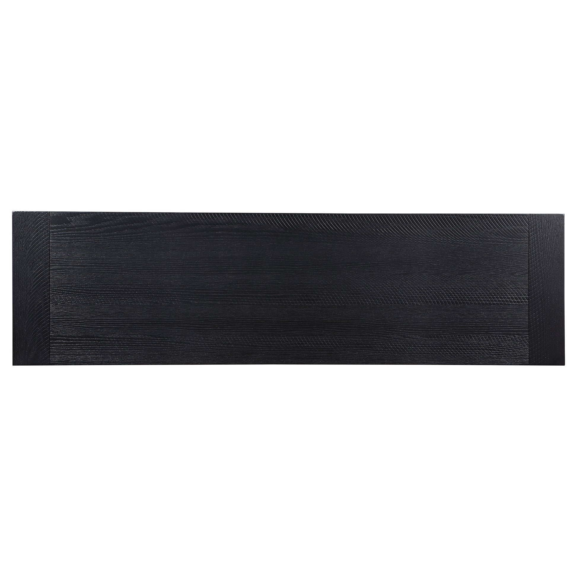 - Charming sawhorse-inspired design with metal bracing and angled feet continues a farmhouse motif