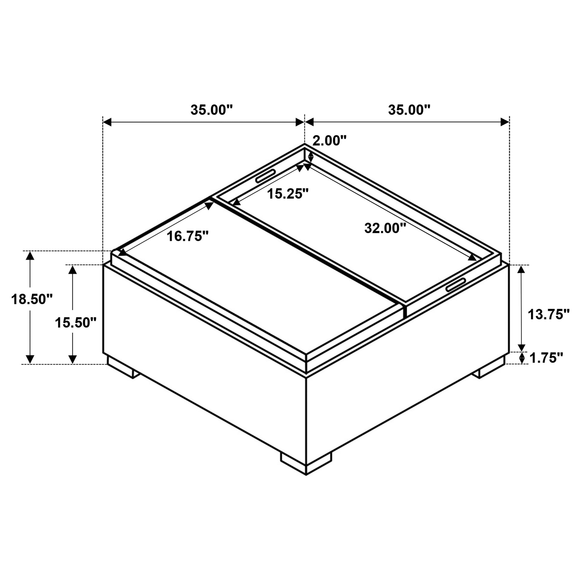 Approximate dimensions: 35.00W X 35.00L X 17.75H
