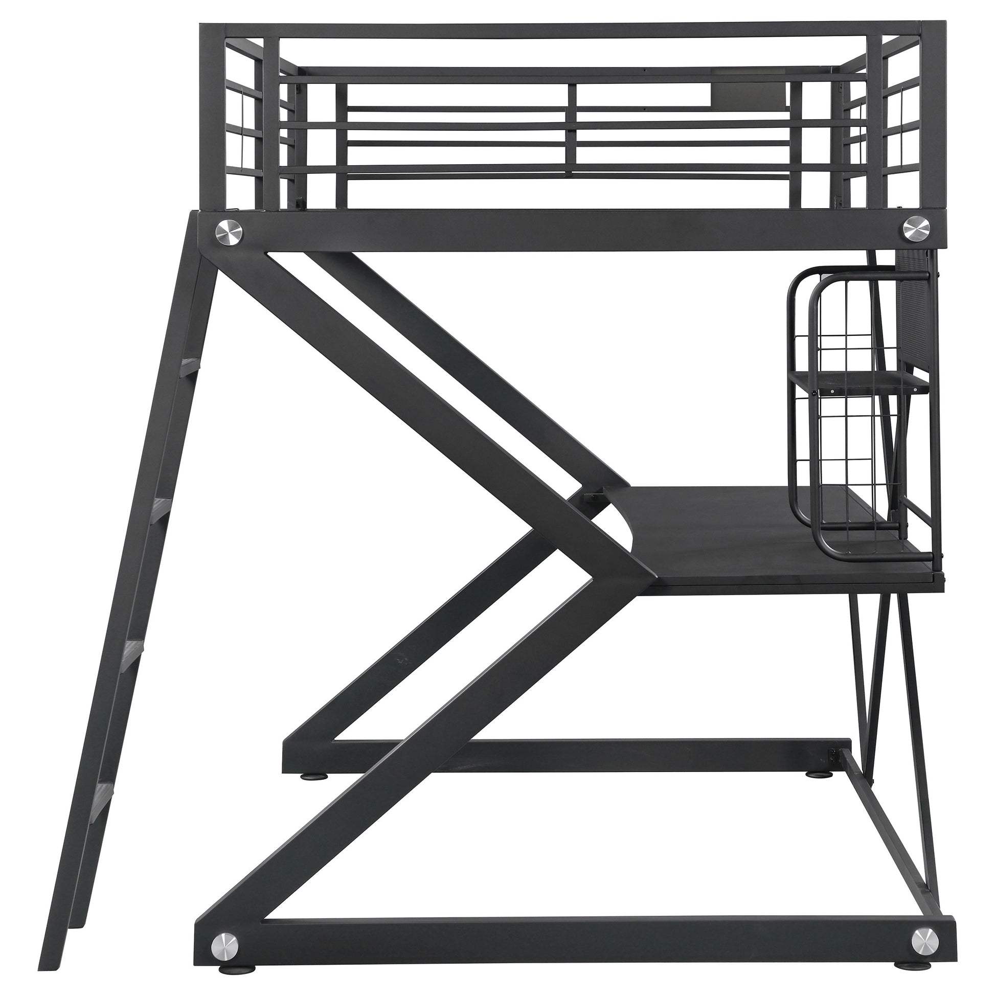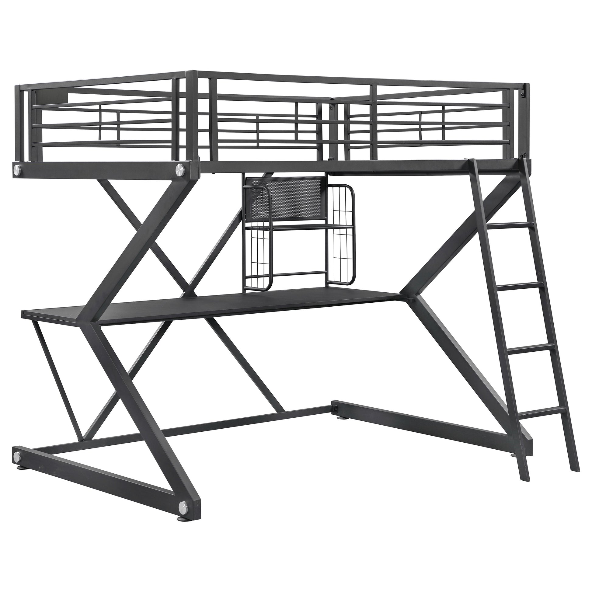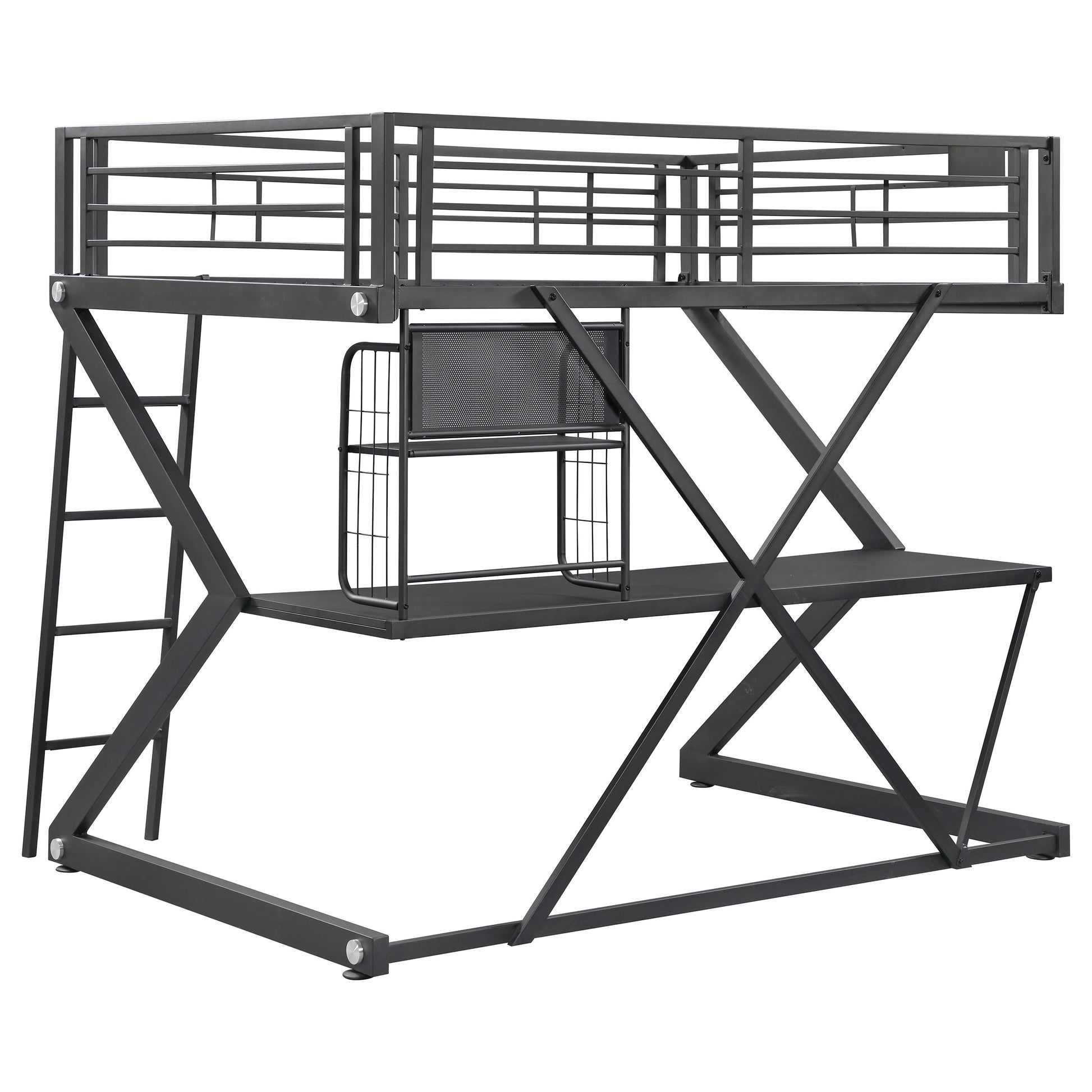 - Geometric Z-frame full workstation loft bed saves space
