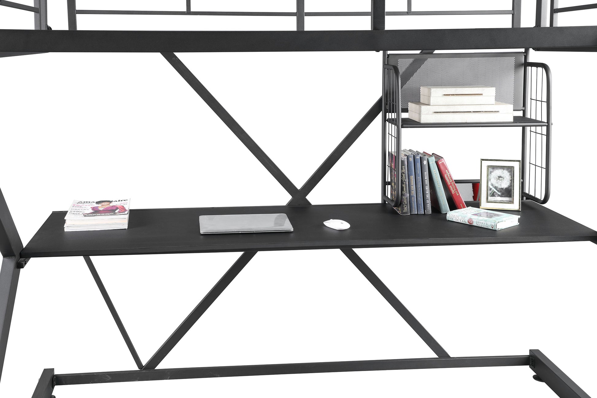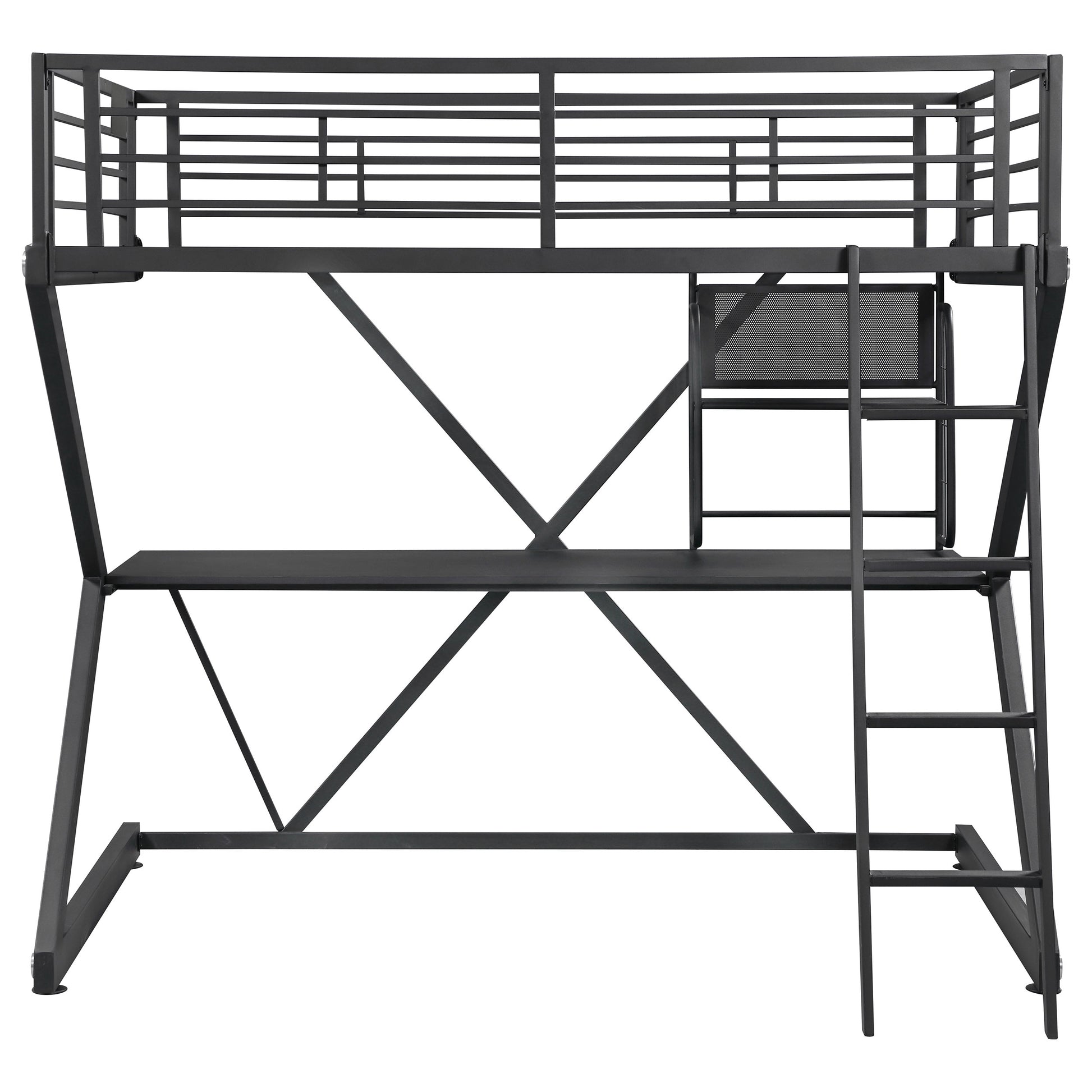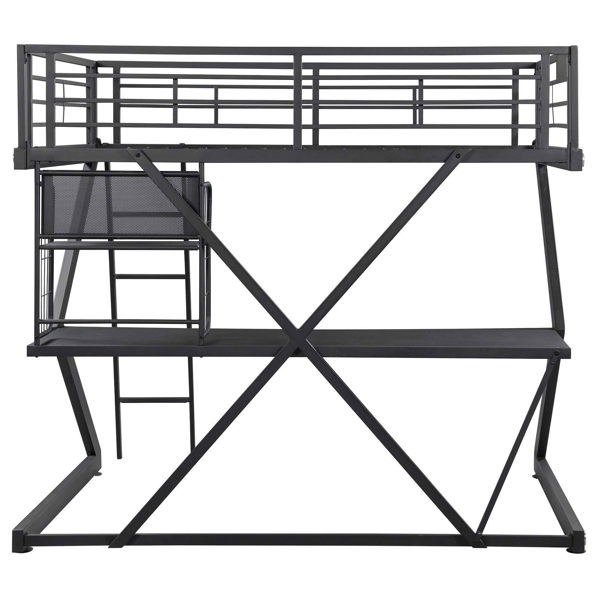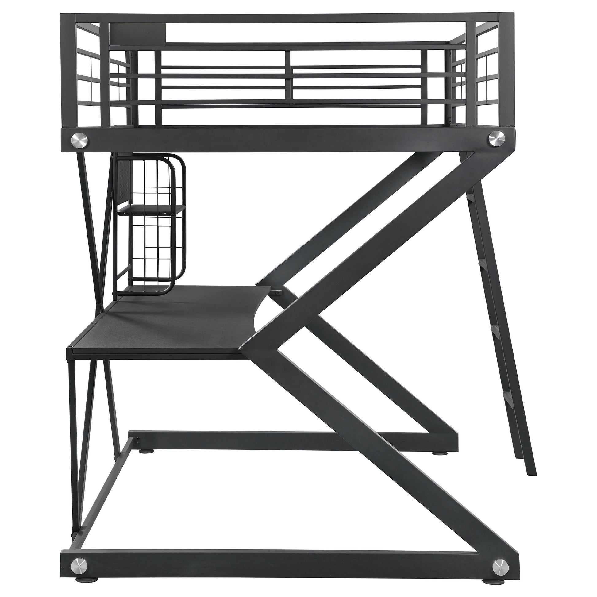 - Geometric Z-frame full workstation loft bed saves space
