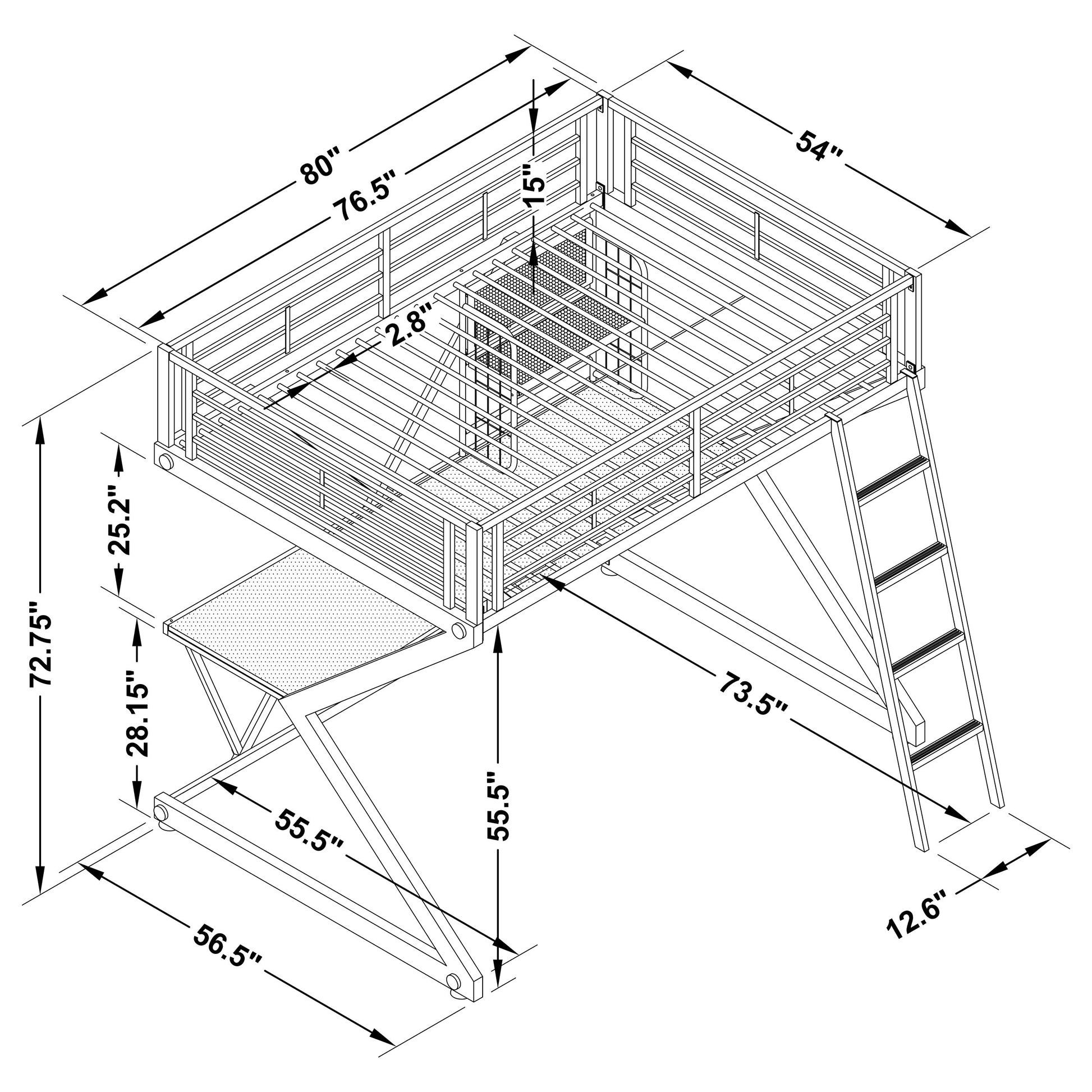 - Includes: One (1) loft bed
