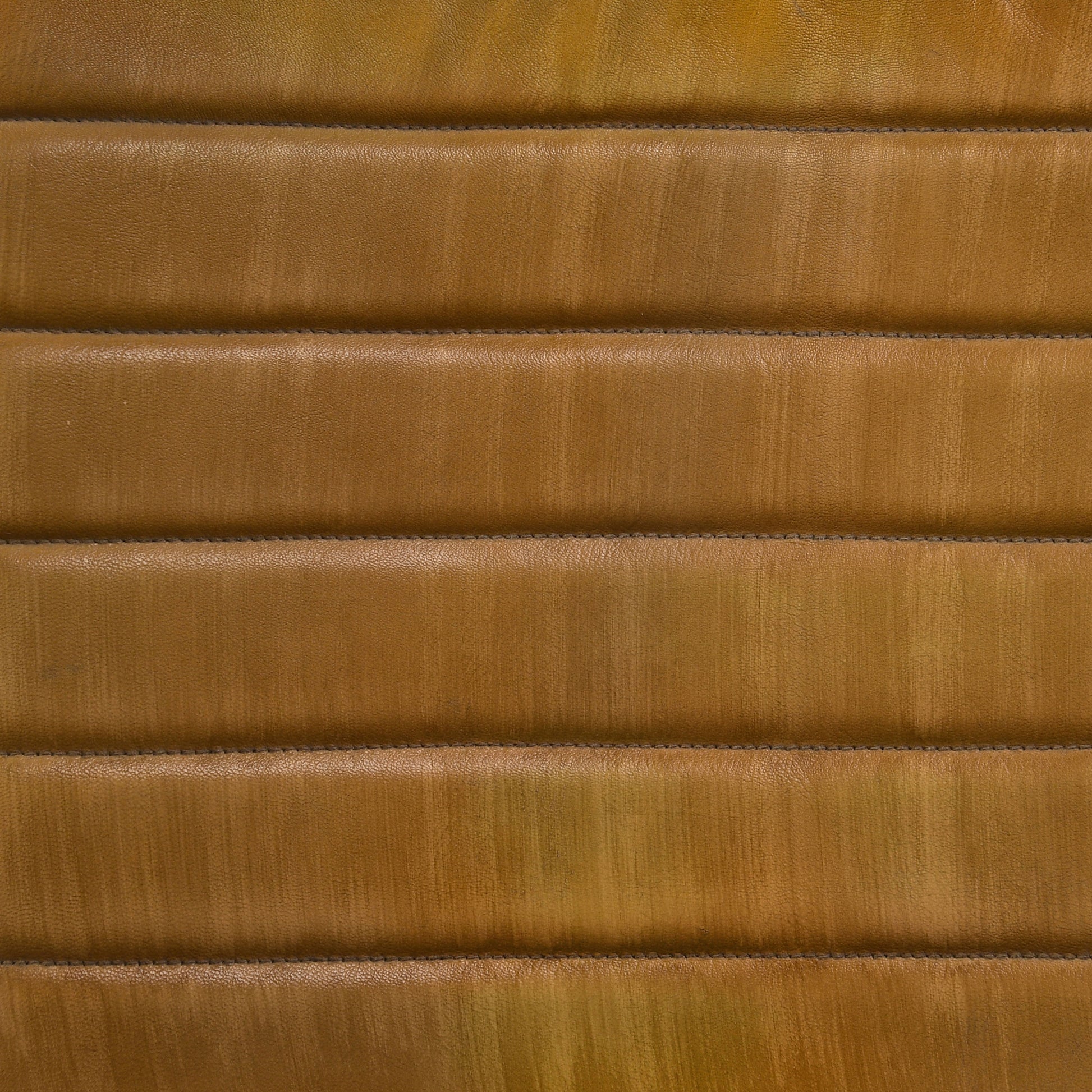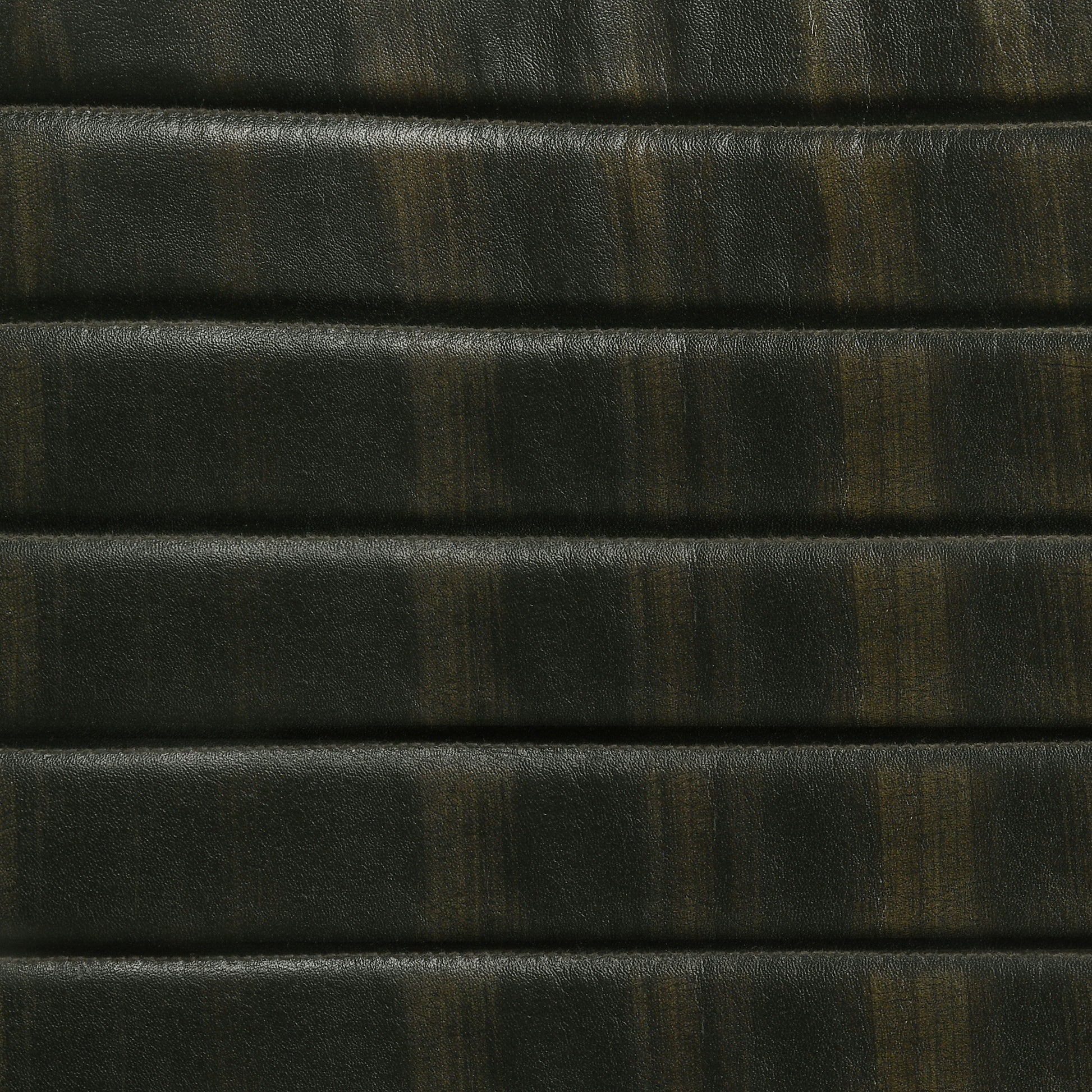 • Embrace industrial influence with comfortable counter stools featuring scoop seats, thick backs, and horizontally channeled leather upholstery, all supported by iconic slender rounded, splayed metal legs