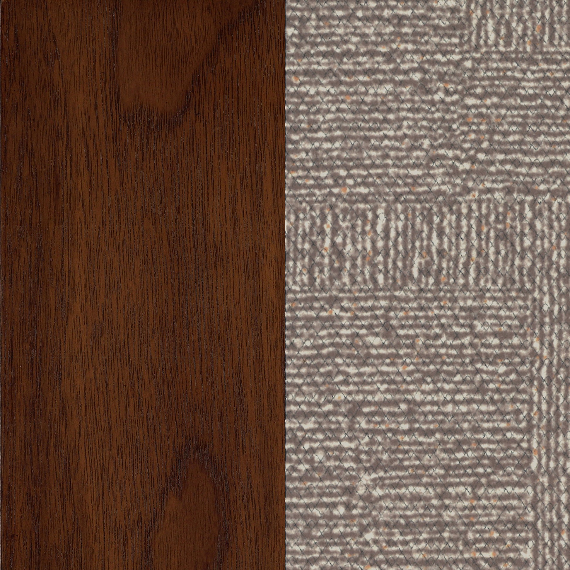 - Mango oak finish over sap walnut veneer creates warmth and character for tabletop and chairs