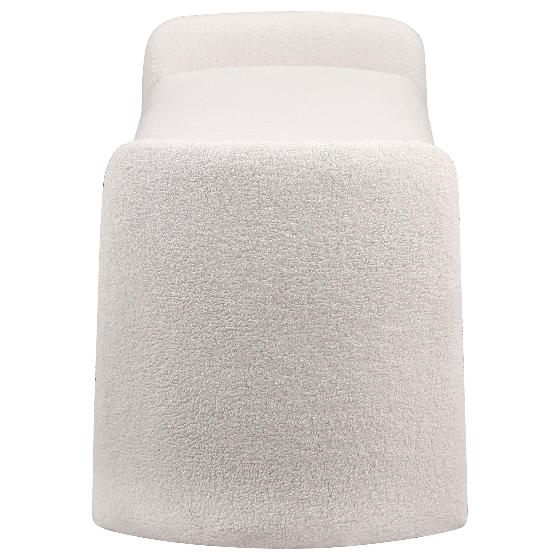 Soften the foot on your bed or a living room wall with the inviting nature of a modern accent bench. It's a charming choice, offering an interesting silhouette complete with rounded supports that extend upward to create arms. The bench is padded with foam for excellent comfort. Ivory boucle upholstery fabric is soft and textured, creating depth and dimensionality in your space. This bench features a contemporary profile, perfect for a modern bedroom, foyer, or living room.
