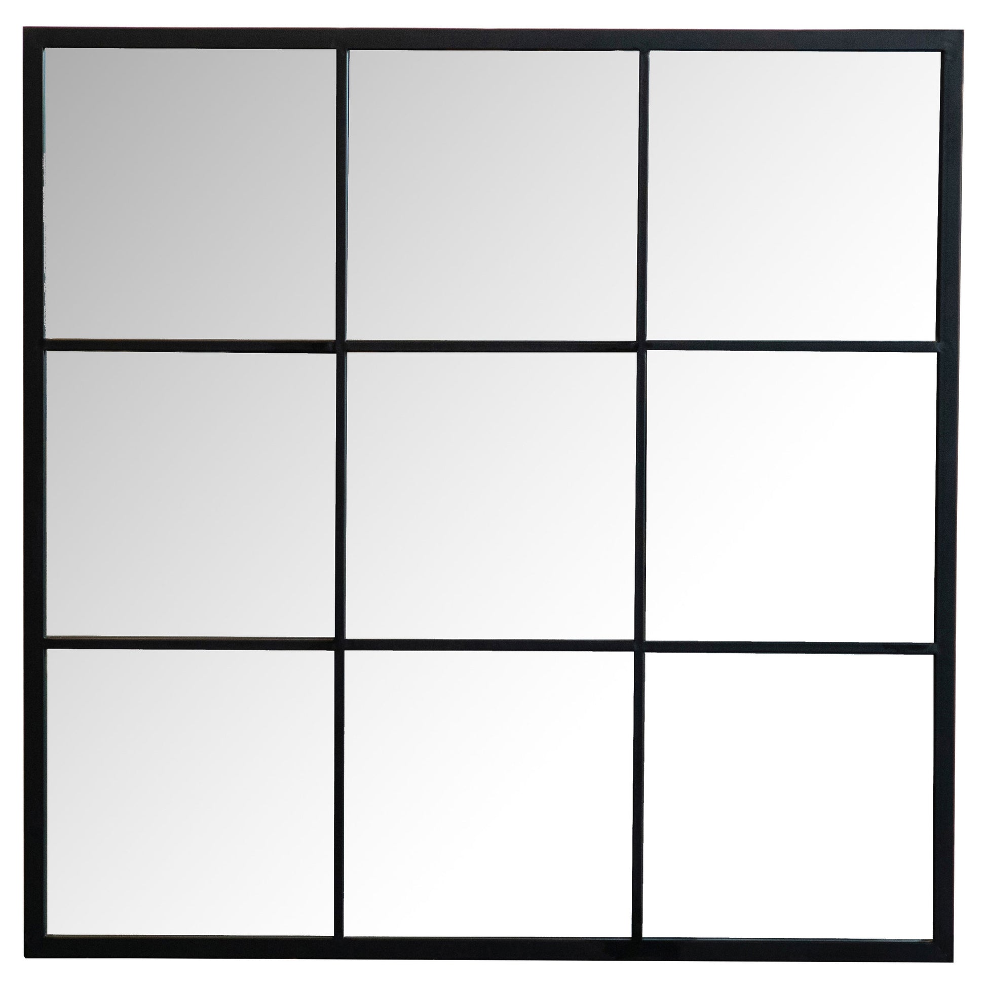 With a classic French windowpane like design, this square mirror offers a traditional touch to a wall. Place this transitional mirror with practically any decor style. A black finish frame and interior trim offers a striking contrast to walls and nearby sconce lighting. Hang it above a bathroom vanity or within an entryway foyer to check yourself before heading out. With its window frame effect, it can open up the space of tight, compact rooms.
