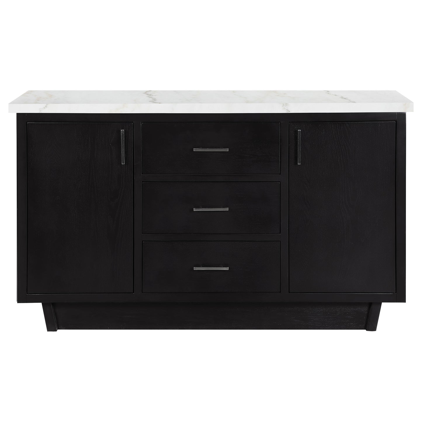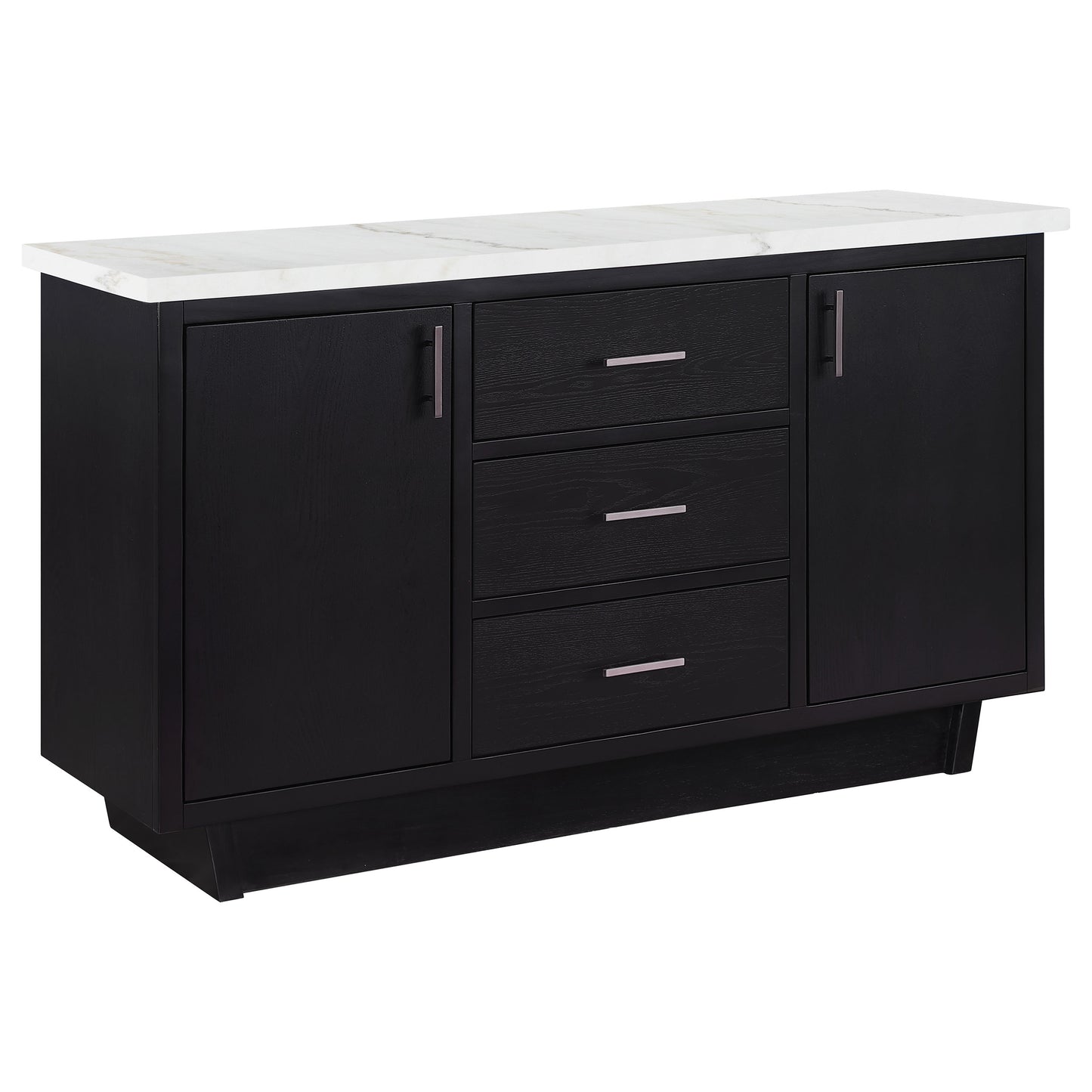 Complete your dining space with our elegant dining server. It features a luxurious white marble top that adds a touch of sophistication. With two door cabinets and three drawers, it provides ample storage space for your dining essentials. This server is both functional and stylish, allowing you to organize your items while enhancing the overall aesthetic of your dining area.